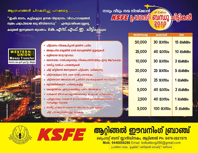 We expect the active cooperation of all our customers and readers of this blog for the success of pravasibandhu chitty schemes of KSFE.
